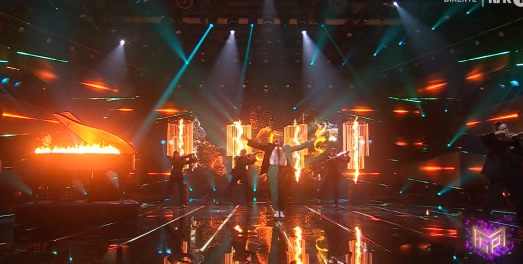 Lily names David Bowie and Queen as some of her musical influences .She has gone very much for the rock chick look , with fire pyros and red rays galore with a black backdrop. accompanied by two guitarists and a drummer.It’s definitely one for the rock fans and Lily gives a powerful performance. A strong start to the night ! I wonder how many songs this year will have the Måneskin effect ?