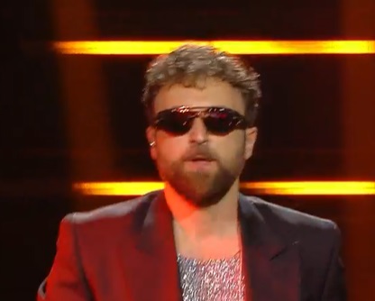 23.49 – Giovanni wears a red vest, so show off his tattoo I suppose. And he has an electric guitar. His song is almost spoken in parts and has an interesting arrangement with what sounds like a theramin. He’s co-written this song, so he’s putting everything into the performance. He doesn’t open his eyes much, which could work against him.