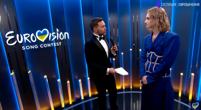 Going to a quick break here. Funny, someone backstage has left their mic on, so we can hear someone chatting away in Ukrainian and the audience in the background!