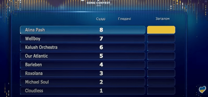 7 points to Kalush Orchestra and the top 8 points to Alina Pash – She’s won!!