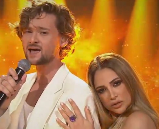 19.18 – Kuba has a nicely slick dance routine, and his song has a refreshingly modern sound. The staging w=switches between white lighting and then a more edgy red lighting. He makes great contact with the camera, and it’s got floor-filler potential. It’s not a bad opener at all.