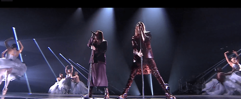 That synthiser sound just grabs you and doesn’t let go! Visually it’s very striking in black and white, though some of the moving graphics end up being a bit nauseating (that might just be me though!). It’s got a real pop-rock edge to it and the vocalist is amazing! Lyrically it feels a tad repetitive, but the sound and the energy from them is undeniable – and listen to that crowd reacting! I can see now why some fans have them tipped to do very well tonight – bravo guys, I enjoyed that!