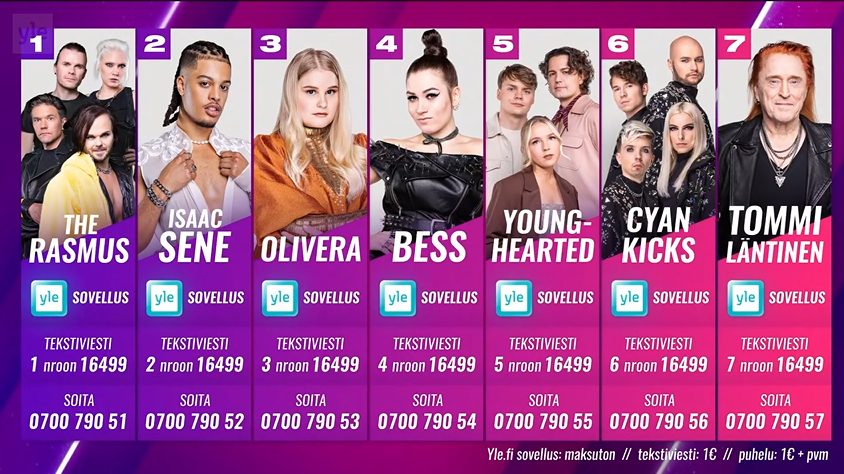 Those all-important numbers that you need to vote for tonight’s winner – you’ll also probably need to be living in Finland, or at least voting from a Finnish number!