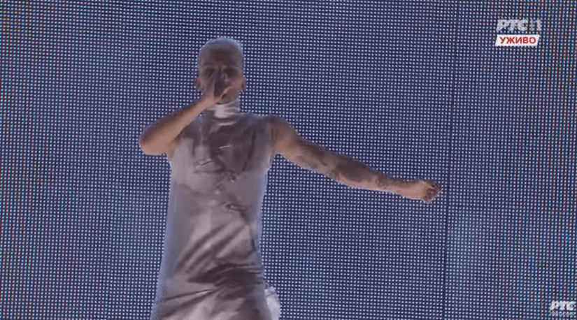 Starting sat at a piano and supported by an all female orchestra, Aca has that confident air of someone who has been working on a stage for years and feels completely at ease there. He’s got a rich and deep voice that suits the mood of the song perfectly and while it’s a kind of ballad we’ve seen at Eurovision before (both from Serbia and other countries), it’s a great example of the genre and the kind of some that will score points at the contest, no problem.