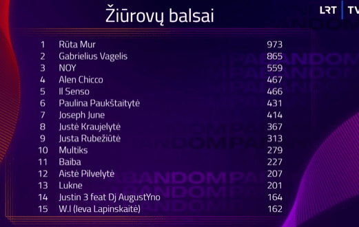 For me, the top 3 is Rūta MUR (3), Gabrielius Vagelis (2) and Paulina Paukštaitytė (1). Do you agree? Who’s your winner tonight?