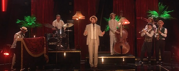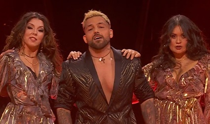 19.19 – As you can guess, this has a more Latino sound to it. The guitar introduction gives it away. His staging is meant to be a small stage, as he’s surrounded by several instrumentalists – drums, guitar, trumpet, trombone. And then as shots widen we see our first flames of the night. It’s another catchy little number although perhaps not quite a stand out for this pleasing genre.