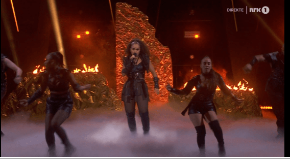 Akuvi has appeared in MGP , in 2020 with “Som du er” . She says she is a fan of Afrobeats hits and jazz . We do get a bit of the African influence in her song “Triumph , with an element of the warrior like gear , reminds me a bit of Ruslana ‘s outfit in 2004 . There’s fire on stage, we have four backing dancers . It’s lively and very much geared up for Eurovision . A great opener .