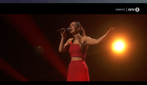 Tiril is 21 years of age , she’s alone on stage, in all red with a dress that looks as if it’s been cut half way through. Staging is dar with a a red curtain background. There are backing vocals which sound as if they are recorded backing vocals. As she finishes the song the curtain behind her falls down. It’s a nice song but I worry it would get lost amongst some of the other uptempo numbers and stronger ballads that have already qualified for the final. A nice performance though , I would like to see her engage more with the camera.