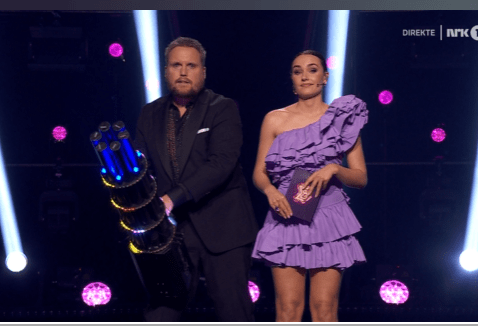 We are getting another reminder of how to vote , but please only vote if you are in Norway as it could be a bit expensive ! More banter from the hosts and the voting has started , literally with a bang ! If you’re watching the show, you’ll see what I mean .Stian firing what looks like some kind of cannon, with confetti like paper in it which I think didn’t quite go to plan !
