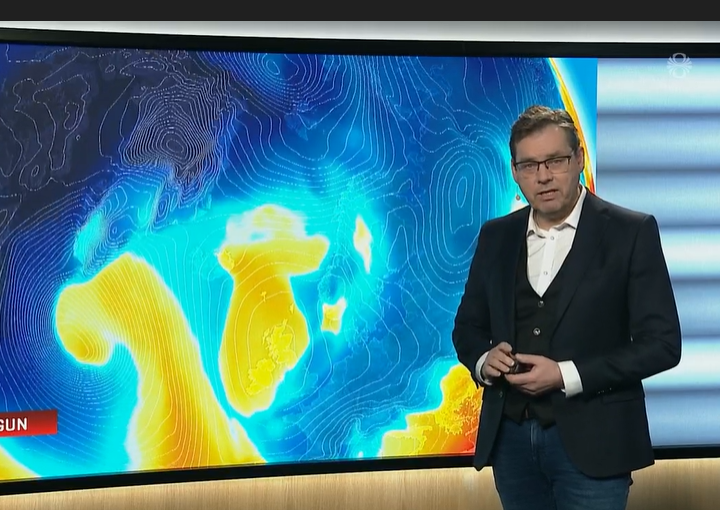 The weather man …he’s a happy looking soul ! :Icelandic weather looks a bit on the cold side tomorrow .