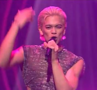21.38 – Trong is true to his Asian roots, with an outfit that has overtones from that part of the world. His song is in English and quite funky. There’s an energetic dance routine to go with his song. And fo course there’s a cvostume change. It’s a good opener, and is getting the crowd going. They love it.