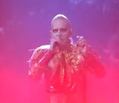 22.37 – Metal goth is the stylee here. A lead singer with a very deep voice, long hair and red lighting. Elements of this might be a bit incongruous with the image being cultivated. But it’s eye-catching and definitely a performance. The multi-level staging of the band is a different idea too. An interesting way to end the song presentations.