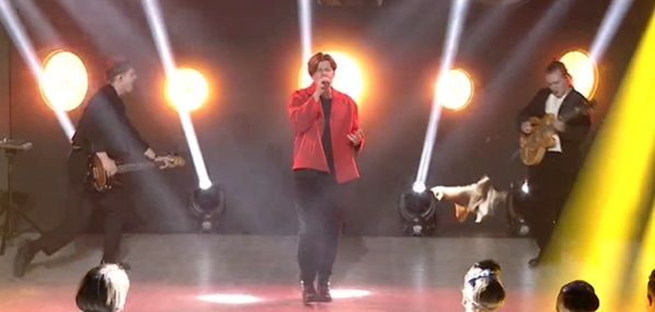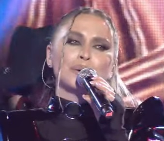 17.20 – Donia has two masked drummers on stage with her. She’s strikingly dressed and this is a midtempo song that wants to have attitude. Will it? Well, her little turntable and warbly delivery is very noteworthy. But to prove she’s talented, she even plays a saxophone.