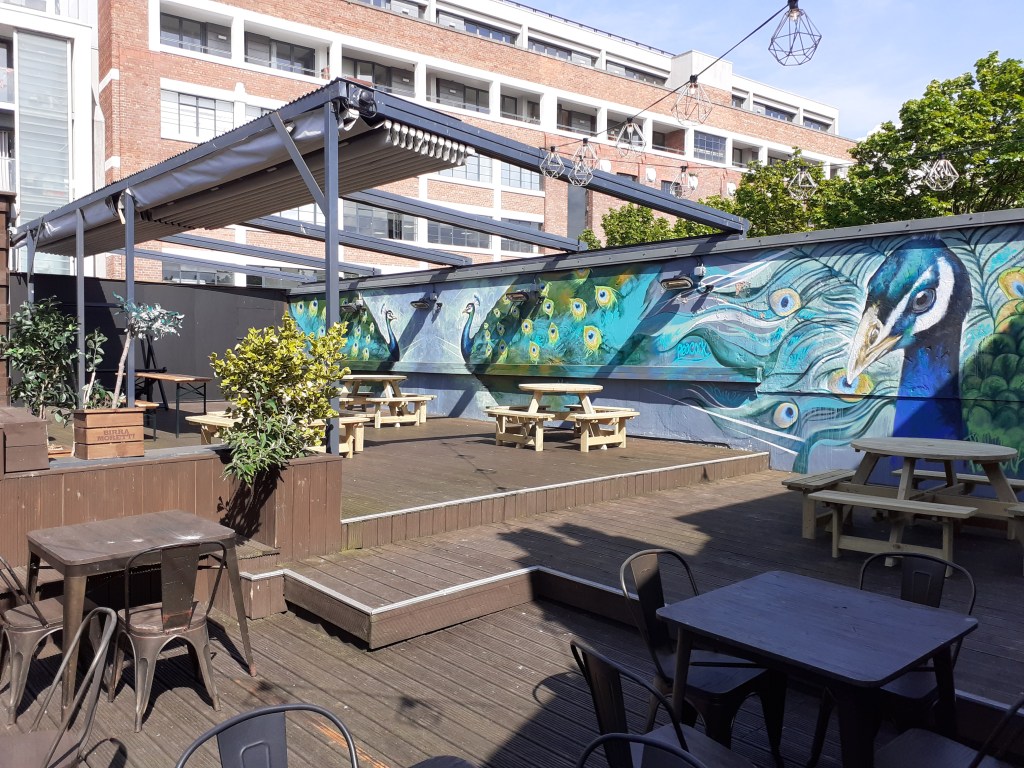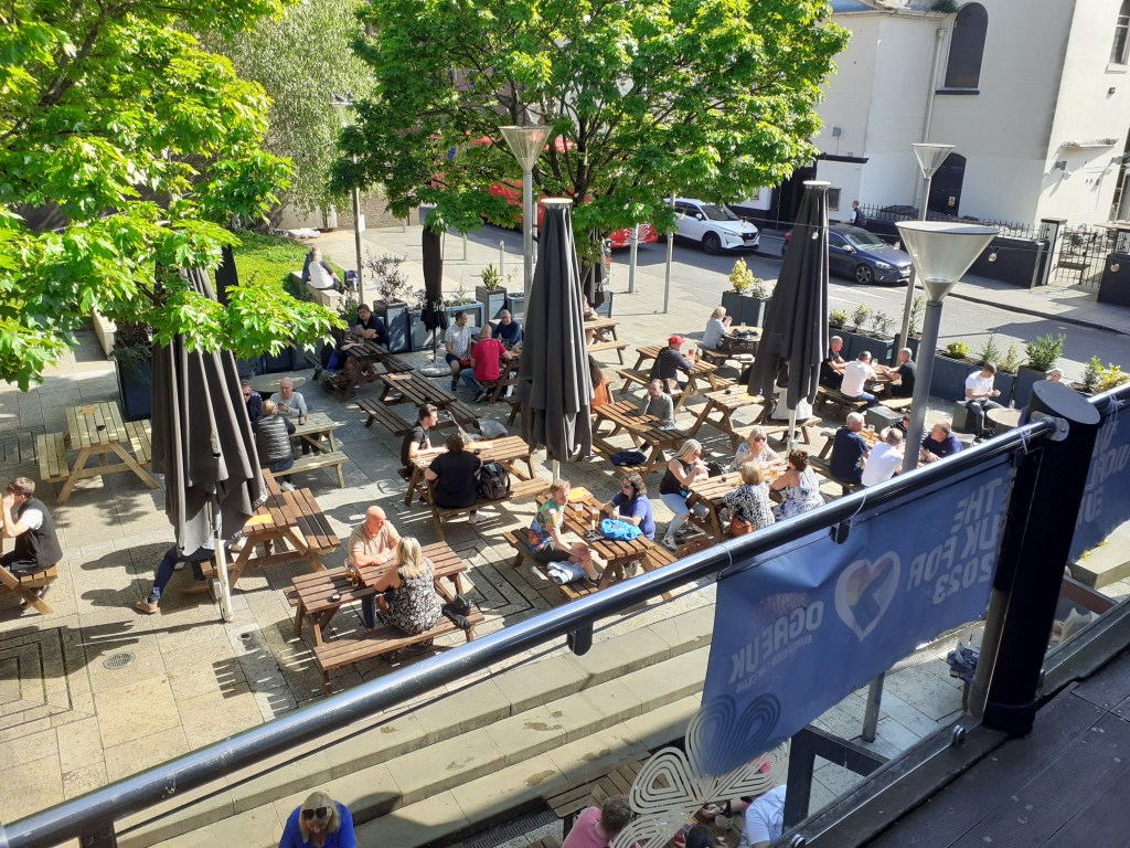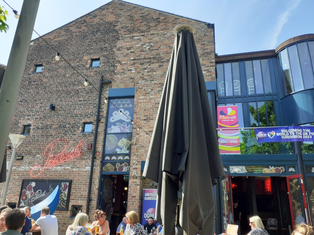 As well as its comfortable and vintage-feeling indoor spaces, The Peacock has a large patio space outside to enjoy and also a roof top terrace. It might have been quiet today, but I’m convinced once word gets around (and if the weather holds!) it’ll be filled with Eurovision fans from around the continent, all enjoying Liverpool and eagerly awaiting the the live shows and of course, the Grand Final and a brand new winner! Who knows? Maybe this is the place you’ll make brand new friends through your joint love of the Eurovision Song Contest <3