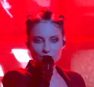 22.02 – Galant are a duo. They both sing too. There’s a Kraftwerk vibe to this, and is set off by old TVs on stage. It’s a different song, and the way selections are going this might hit the mark. There’s a catchy chorus replete with a dance move meant to be a cat holding out its claws. It bounces along really well and is the most noteworthy song of the night so far.