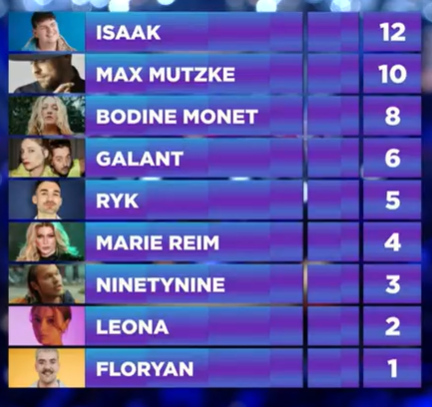 23.34 – Eight points to Ryk (total 13). Ten points to Max Mutzke (total 20 points)