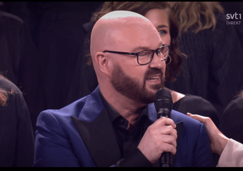 Awww , Fredrik is in the audience and he looks a bit emotional hearing the choir sing his songs, bless him !
