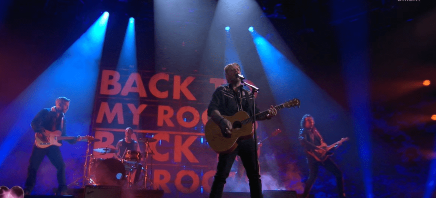 Dark staging with the words “Back to my Roots ” in big red letters. Jay joined by two guitarists and drummer on stage . It’s an uptempo song , a bit in the Bruce Springsteen style . Lively performance but I felt it was more one for radio than Eurovision .