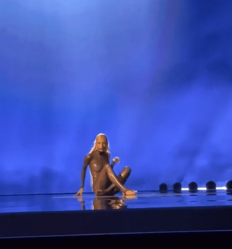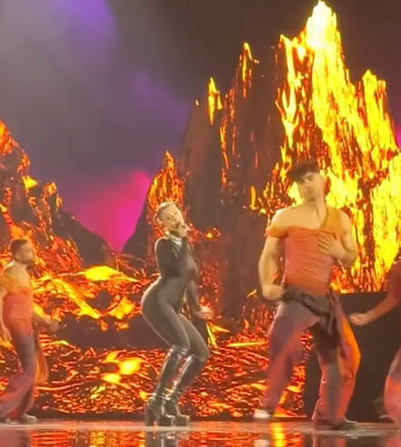 Skin -tight suits are all the rage by the looks of Raiven’s staging which is mainly a blue backdrop with white depicting clouds and Raiven joined on stage by backing contemporary dancers who she interacts on stage with.Again need to see the full performance before giving views on Raiven’s chances. You can see the Tik Tok clip HERE