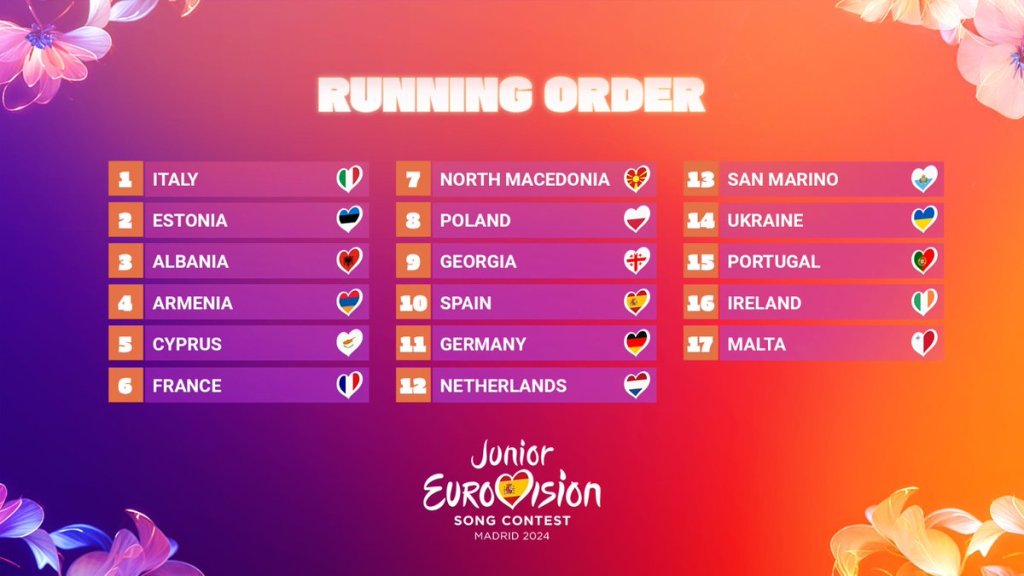 RTVE, the Spanish national broadcaster, have revealed the running order for the 2024 Junior Eurovision Song Contest, in Madrid.