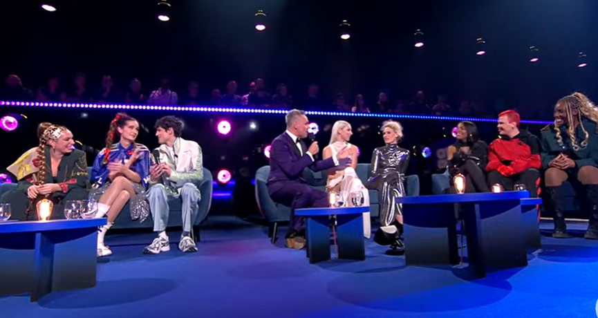 Gustaph’s in the panel too . There’s a bit of banter , explaining the procedure for tonight and some chat with the panellists .I can’t understand a word of Dutch/Flemish, so bear with me , they talk very quickly !Quick reminiscence of Gustaph’s Eurosong victory in 2023. They’re showing that bit where he’s announced as winner and he looked totally shocked! Love it!
