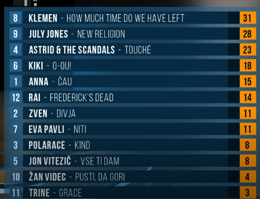 20:39 Klemen an July are still in top 2 after 4 juries have voted.