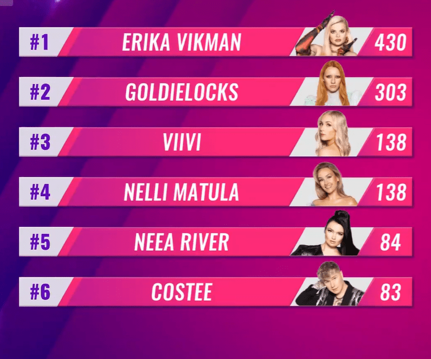 Voting has started now! Yes, you heard that right! They are using the same process as the Eurovision Song contest itself ! Finns can vote via an App or by text , so please don’t try this if you’re anywhere else!