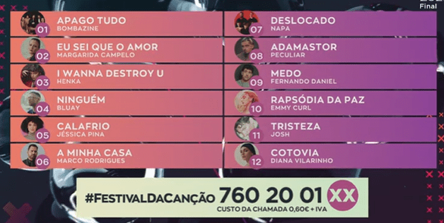 00.15 – We’re off to our first regional jury now – Norte. 8 points to Margarida Carmelo. 10 to Henca. And 12 to Peculiar