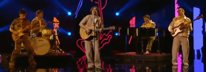 22.20 – We have a more imaginative set for this one. Fernando is sat at a small table with a desk lamp. His song is very pared back and he accompanies himself with a guitar. He then ditches the guitar and sings at us, almost imploring us to vote for him. By the end of the song, he has his band with him. It’s very well put together and does have a decent hook and chorus. He sounds popular hereabouts too.